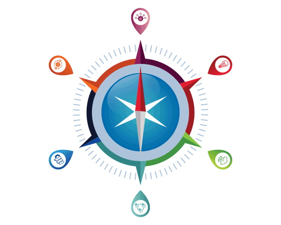 - Comprehensive solution portfolio — Digital Compass leads clients through six integrated innovation tracks (Insights, Experiences, Operations, Productivity, Infrastructure, and Capability), helping them focus on the right problem at the right time and providing the greatest value to their business.